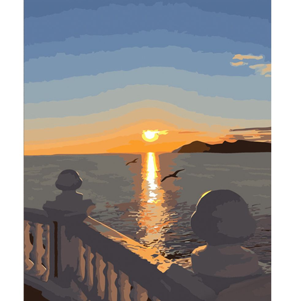 Картина за номерами Strateg ПРЕМІУМ Світанок на морі розміром 40х50 см (GS561)