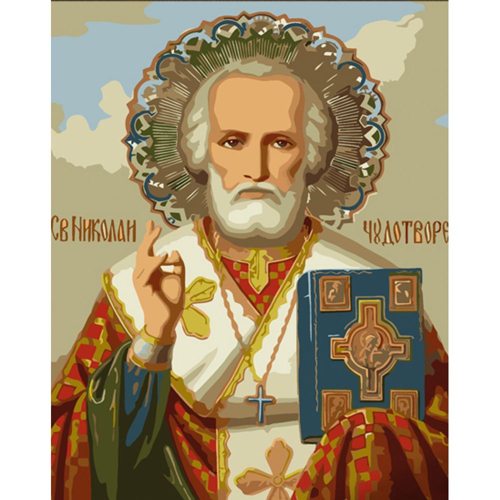 Картина за номерами Strateg ПРЕМІУМ Святий Миколай Чудотворець з лаком розміром 30х40 см (SS6747)