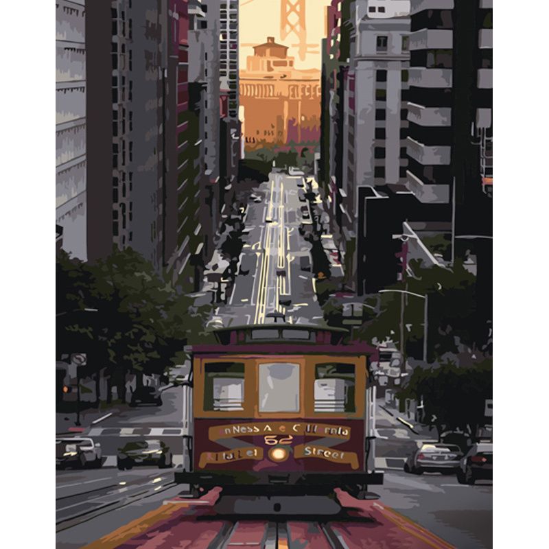 Картина за номерами Strateg ПРЕМІУМ Трамвай у Сан-Франциско розміром 40х50 см (GS1284)