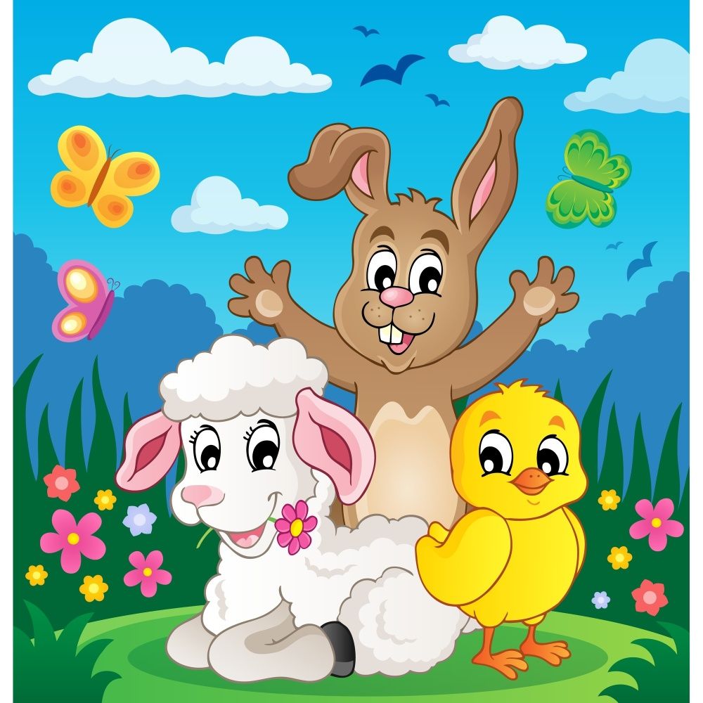 Картина за номерами Strateg ПРЕМІУМ Тварини граються на галявині з лаком та з рівнем розміром 30х30 см (ES171)