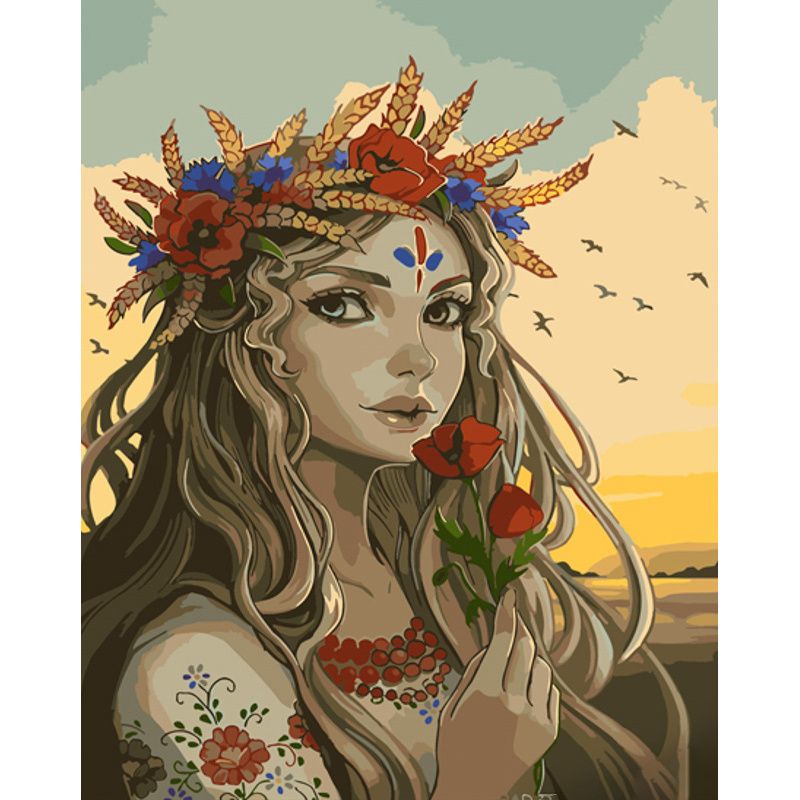 Картина за номерами Strateg ПРЕМІУМ Українка у вишиванці з лаком розміром 40х50 см (GS827)