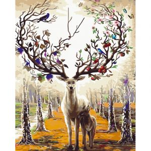 Картина за номерами Strateg ПРЕМІУМ Величні роги оленя з лаком та з рівнем розміром 40х50 см (GS1492)