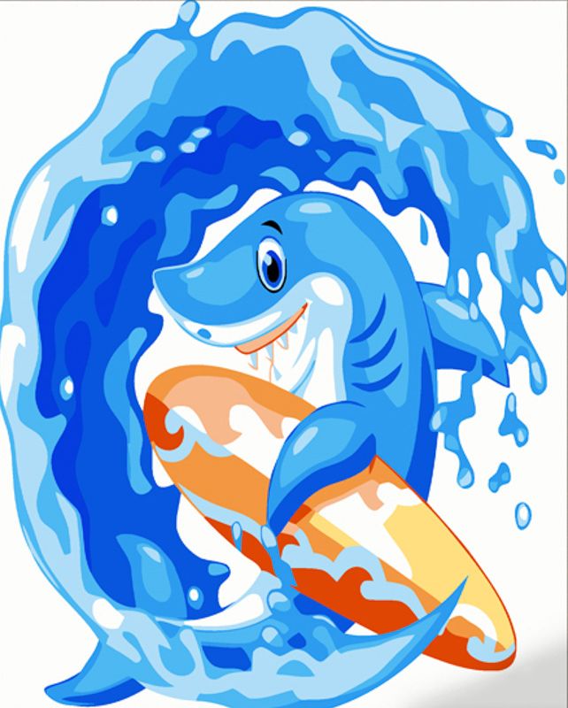Картина за номерами Strateg ПРЕМІУМ Весела акула розміром 30х30 см (ES132)