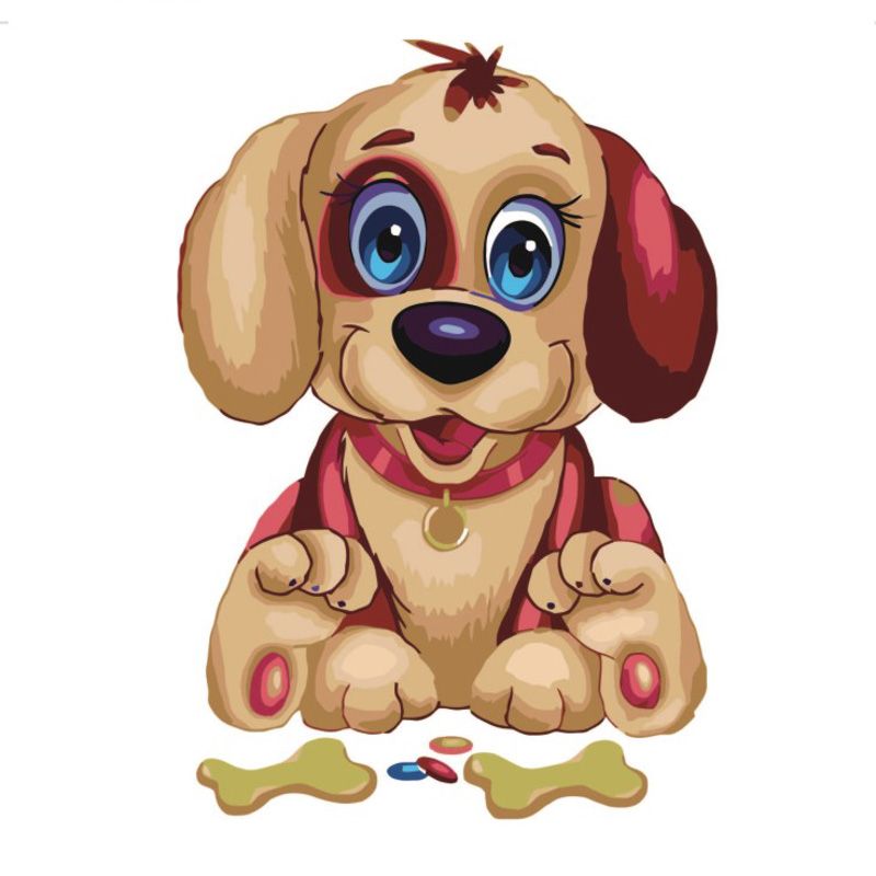 Картина за номерами Strateg ПРЕМІУМ Веселе цуценя з лаком розміром 30х30 см ES009
