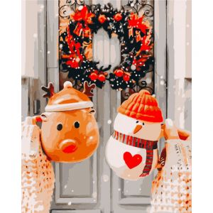 Картина за номерами Strateg ПРЕМІУМ Веселі шапки з лаком та з рівнем розміром 40х50 см (GS1558)