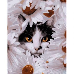 Картина за номерами Strateg ПРЕМІУМ Вусач у ромашках з лаком розміром 40х50 см (GS1229)