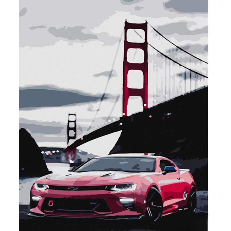 Картина за номерами Strateg ПРЕМІУМ Ягуар на фоні мосту розміром 40х50 см (HH032)