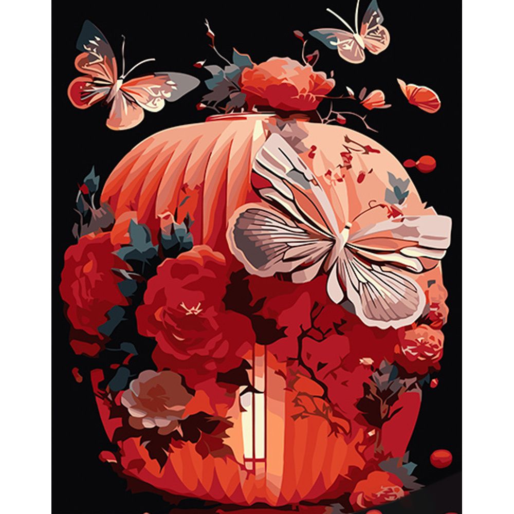 Картина за номерами Strateg ПРЕМІУМ Японський ліхтар у квітах на чорному фоні розміром 40х50 см (AH1009)