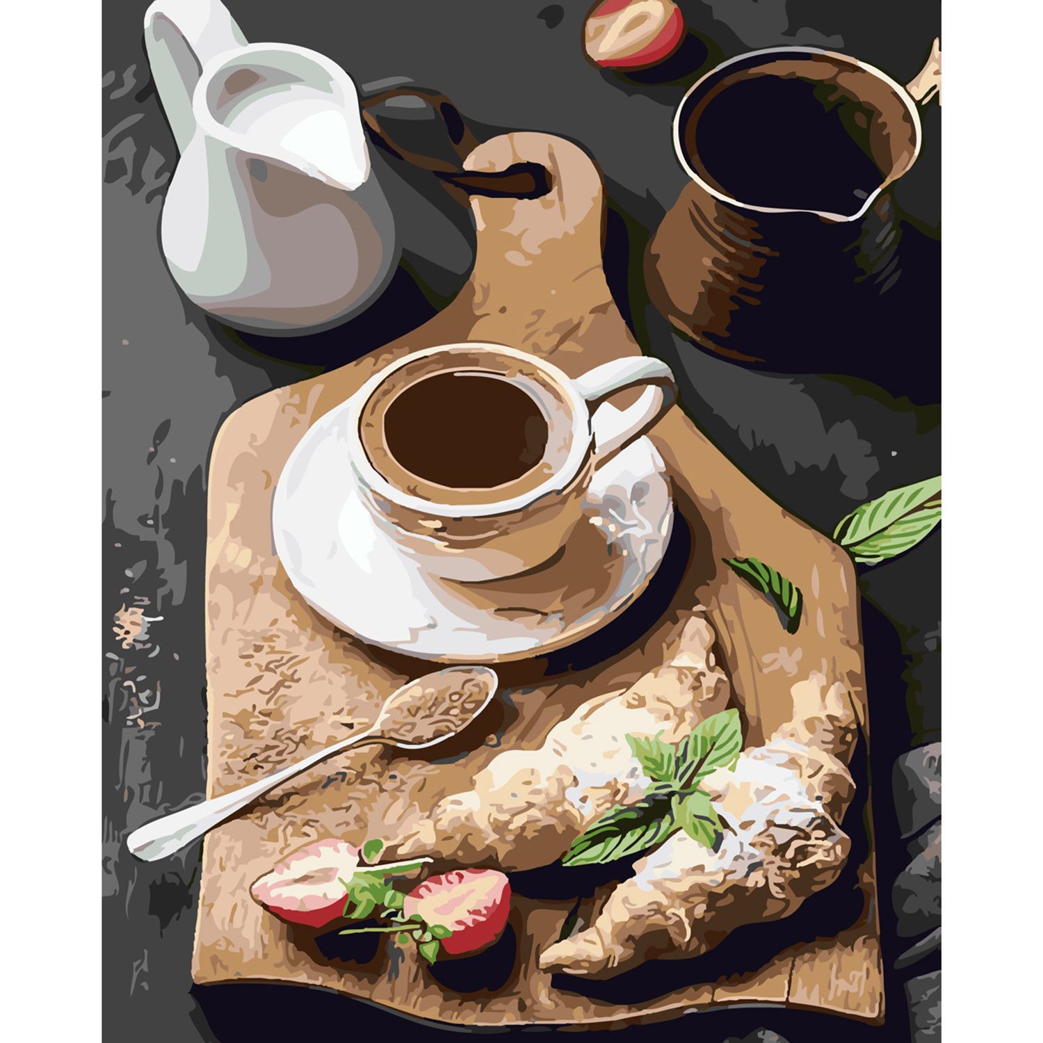 Картина за номерами Strateg ПРЕМІУМ Запашна ранкова кава з лаком розміром 40х50 см SY6255