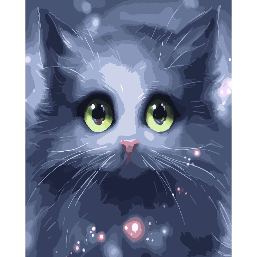 Картина за номерами Strateg ПРЕМІУМ Зеленооке кошеня розміром 40х50 см (GS373)