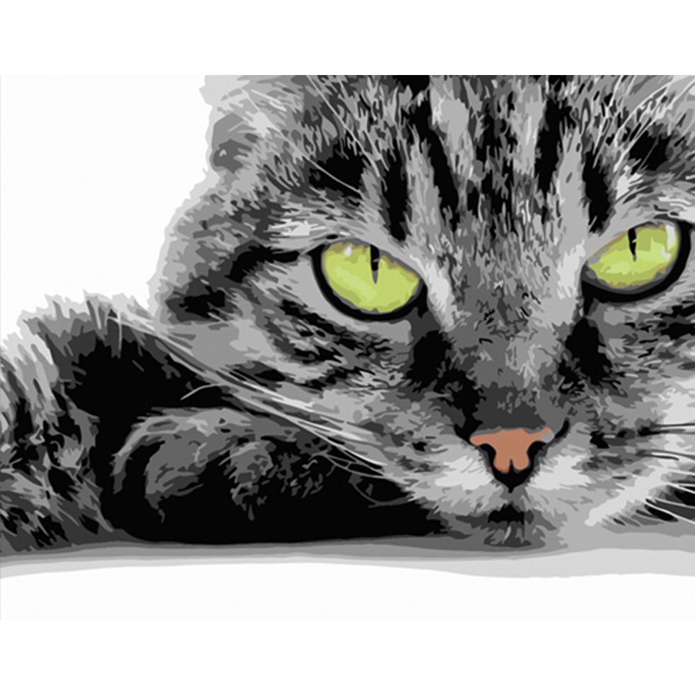 Картина за номерами Strateg ПРЕМІУМ Зеленоокий котик розміром 40х50 см (HH090)
