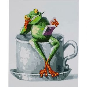 Картина за номерами Strateg ПРЕМІУМ Жабеня на чашці розміром 40х50 см (GS079)