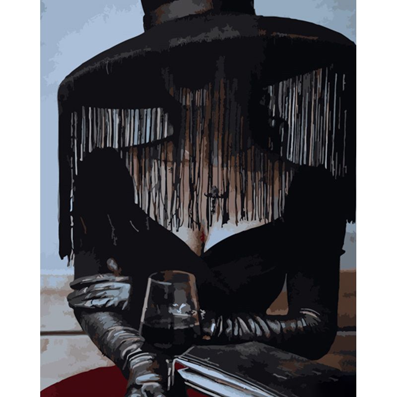 Картина за номерами Strateg ПРЕМІУМ Жінка під вуаллю розміром 40х50 см (GS802)