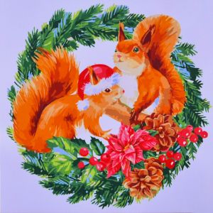 Картина за номерами Strateg ПРЕМІУМ Зимові білочки з лаком та з рівнем розміром 40х40 см(SK058)