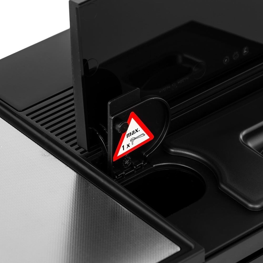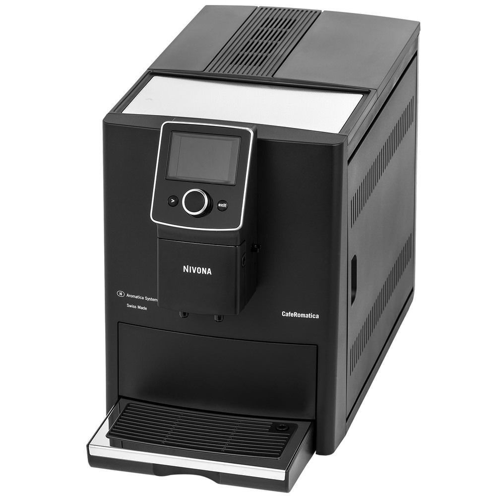 Кавова машина автоматична Nivona CafeRomatica 820 (NICR 820) являє собою настільний прилад, виготовлений в матовому чорному кольорі з хромованими вставками в сучасному дизайні. Для приготування ароматних кавових напоїв із зернової і меленої кави в ній створюється тиск 15 бар. Модель обладнана кавомолкою, що тихо працює, з конічними жорнами з нержавіючої сталі, контейнером для 250 грам зерен і ємністю для води об’ємом 1,8 літра.
