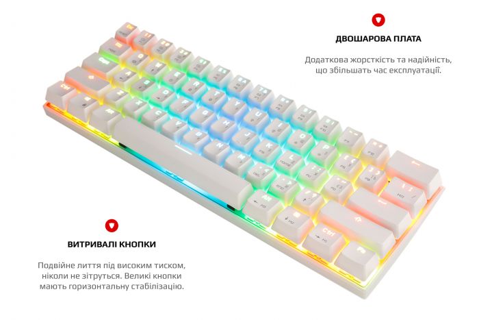 Ретельно продумана та спроектована з увагою до дрібниць. Компактна клавіатура з повноцінною підсвіткою та індивідуальним стилем.