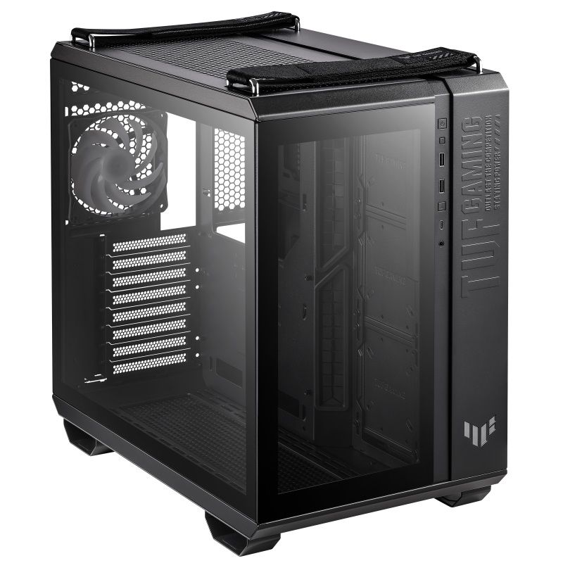 TUF Gaming GT502 Plus має двокамерну конструкцію, яка дозволяє створити окремі зони охолодження для процесора та відеокарти. Це забезпечує ефективне відведення тепла та стабільну роботу системи навіть при високих навантаженнях. Гнучкий розподіл потоків покращує загальну продуктивність.