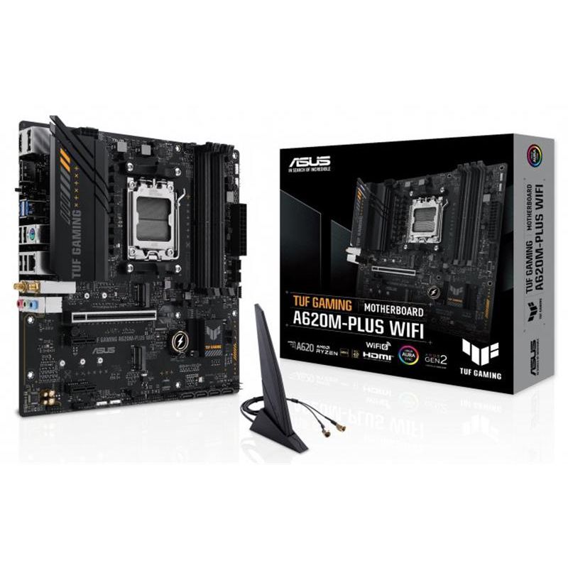 ASUS TUF GAMING A620M-PLUS WIFI увібрала в себе всі основні елементи процесорів AMD Ryzen 7000-ї серії та поєднала їх з ігровими функціями і перевіреною довговічністю. Завдяки компонентам військового класу, модернізованій системі живлення та комплексній системі охолодження ця материнська плата перевершує всі очікування, забезпечуючи надійну та стабільну продуктивність для марафонських ігор.