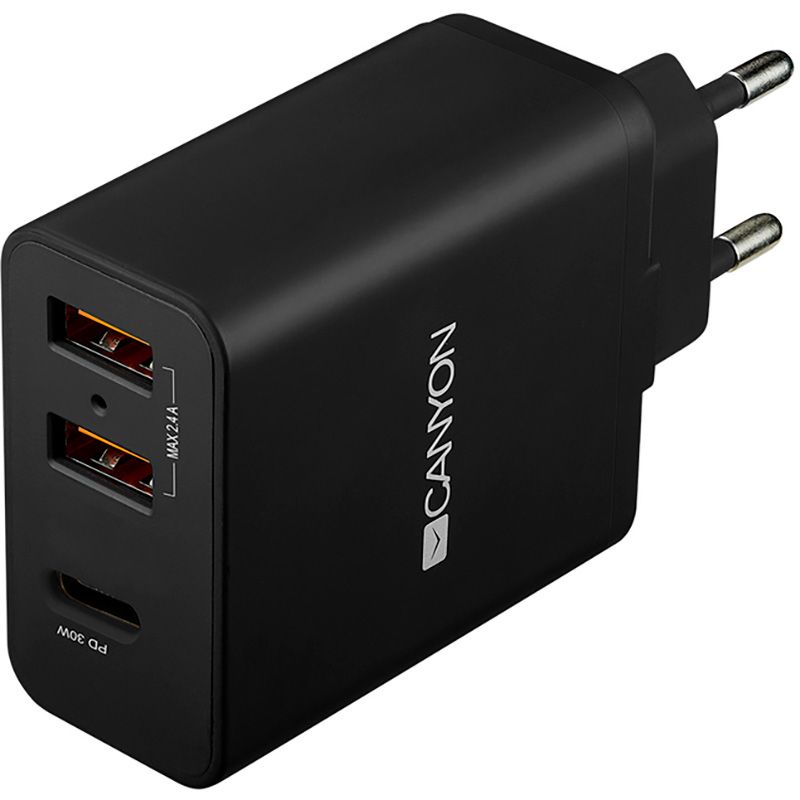 Мережевий зарядний пристрій Canyon (2USB, 2.4A) Black (CNE-CHA08B)