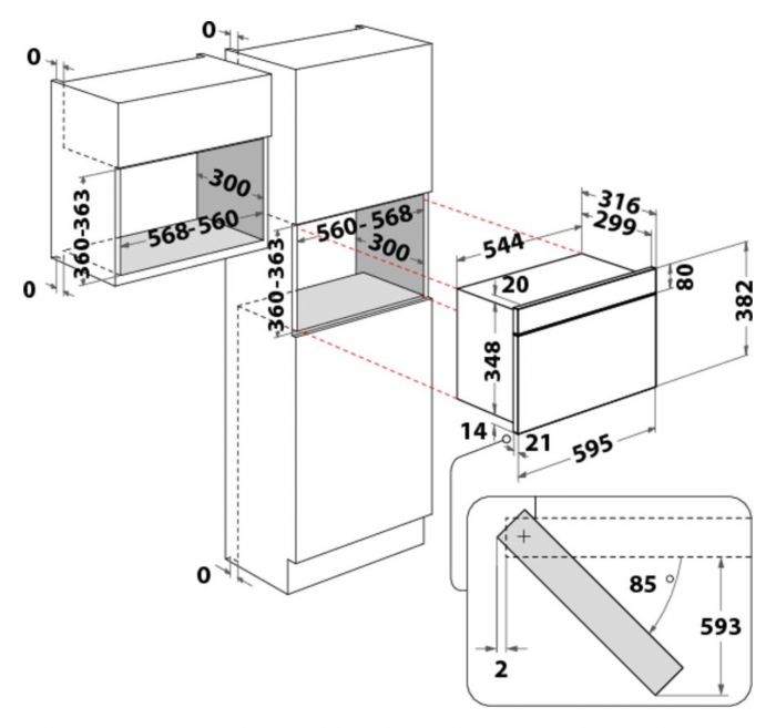 Габарити ніші для вбудовування:560-568 х 360-363 х 300 мм