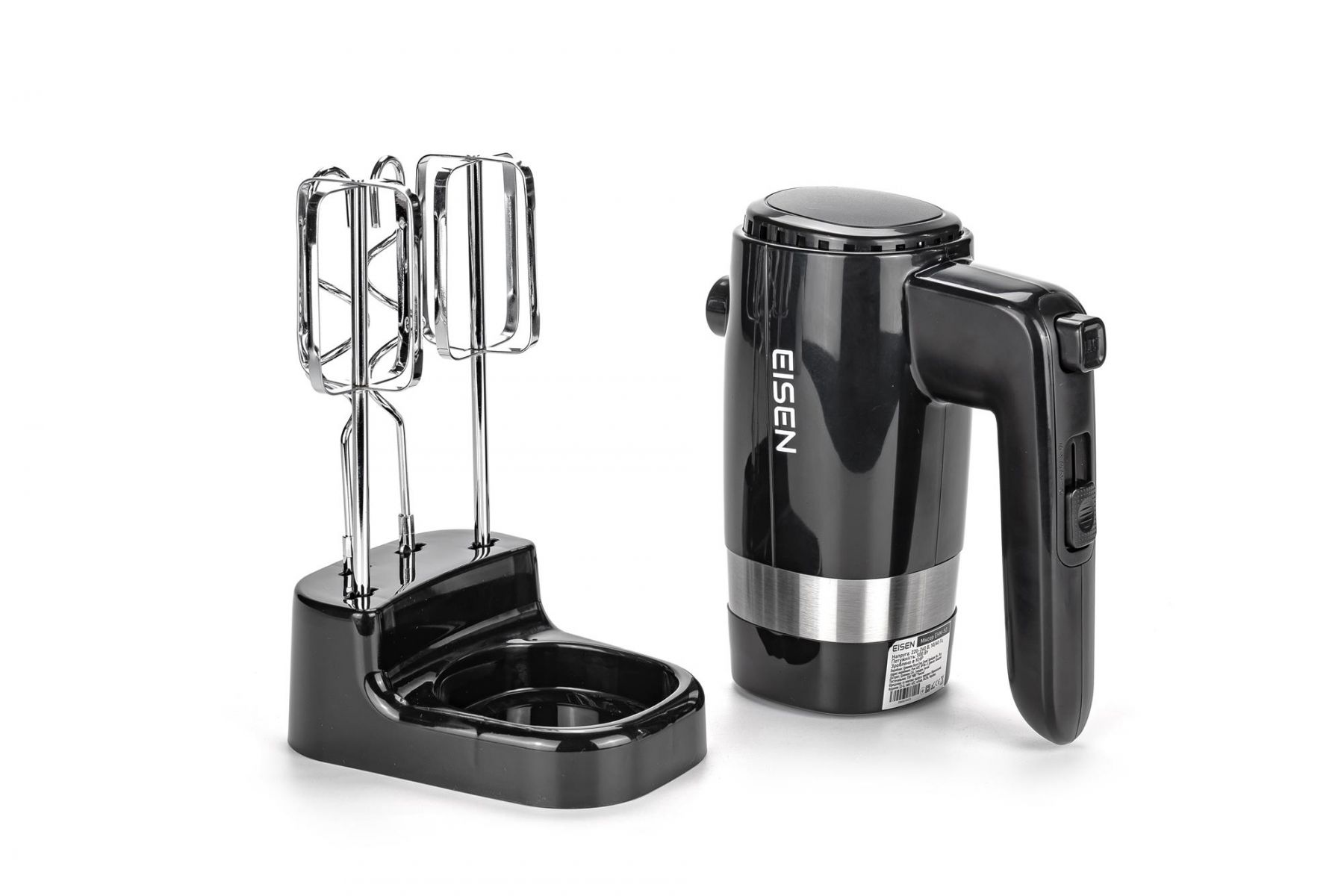 Міксер EISEN EHM-55W має підставку для зберігання міксера та насадок, що забезпечує зручне зберігання і зменшує ризик втрати деталей.