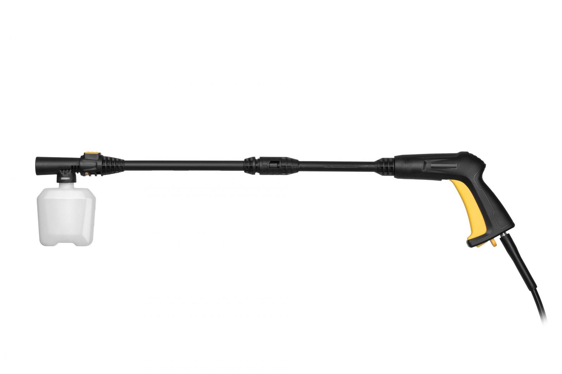 Корпус моделі виготовлено з якісного ударостійкого пластику первинної переробки, на його поверхні передбачені спеціальні кріплення, що надають змогу впорядкувати аксесуари для мінімийки й водночас мати їх напохваті. Модель оснащена довгим руків’ям і колесами для зручного транспортування. Крім того, конструкцією передбачено систему швидкознімних з’єднань: пістолет із запобіжником за лічені секунди під’єднується до шланга й розпилювальної насадки (сопло). Довжина шланга становить 6 м, а кабелю живлення – 5 м.
