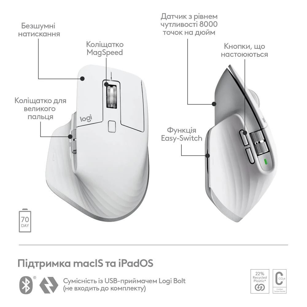 Миша Bluetooth Logitech MX Master 3S For Mac Pale Grey (910-006572)
