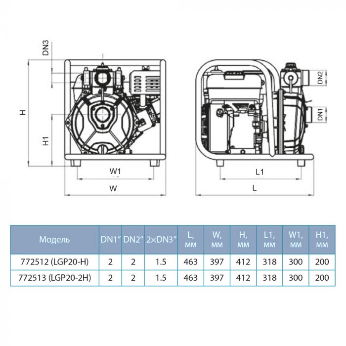 Мотопомпа 6.5 к.с. Hmax 80м Qmax 20м³/год (4-х тактний) LEO LGP20-2H (772513)