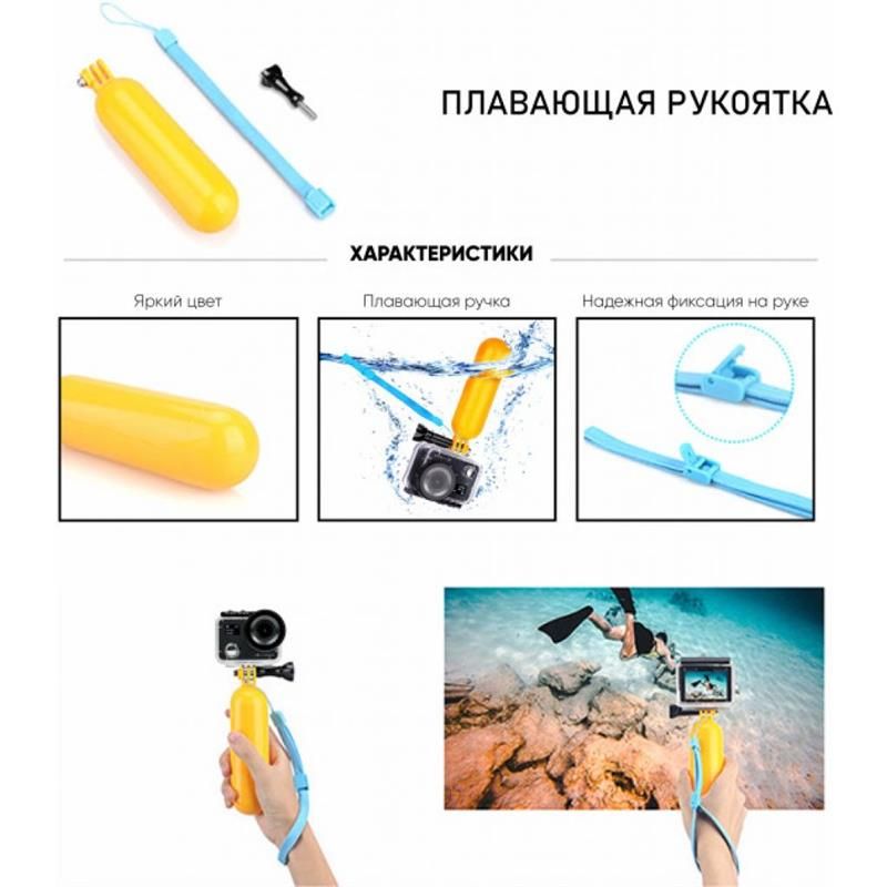 У комплекті ви знайдете кріплення на груди, плаваючий монопод, трипод, селфі-палицю, наклейки ЗМ, кріплення для штативів та велосипеда, а також багато іншого в захисному транспортувальному кейсі розміром 32 х 21 см.