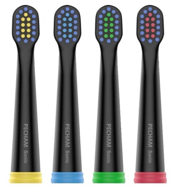 Усі насадки для щітки Pecham Travel мають кольорові смужки, що полегшить ідентифікацію, якщо насадками користуються кілька членів сім’ї.