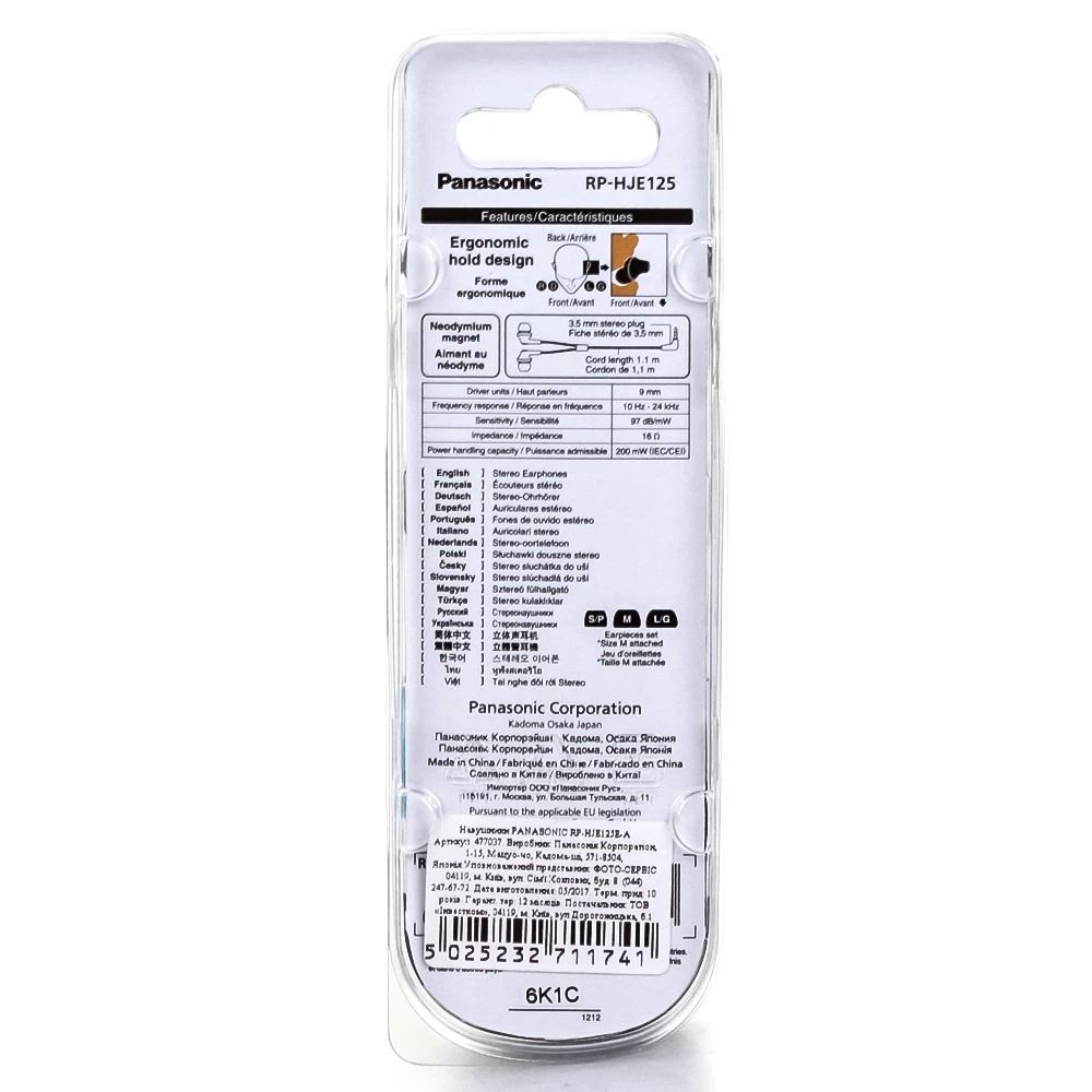 Panasonic RP-HJE125E-A - практично невагомі внутрішньоканальні навушники з динамічними випромінювачами діаметром 9 мм, сумісні з продукцією Apple і аудіоустроями інших брендів (роз'єм підключення - mini jack 3,5 мм). Модель що розглядається характеризується зручною посадкою у вушний канал завдяки анатомічному дизайну і м'яким силіконовим вкладишам, забезпечує хорошу якість звуку з досить виразними басами і чіткими верхами, має стандартний 1,1-метровий кабель з L-подібним штекером. Враховуючи останній нюанс, Panasonic RP-HJE118GU можна використовувати не тільки в домашніх умовах, але також і в дорозі. Максимальна вхідна потужність цього виробу заявлена на рівні 200 мВт.