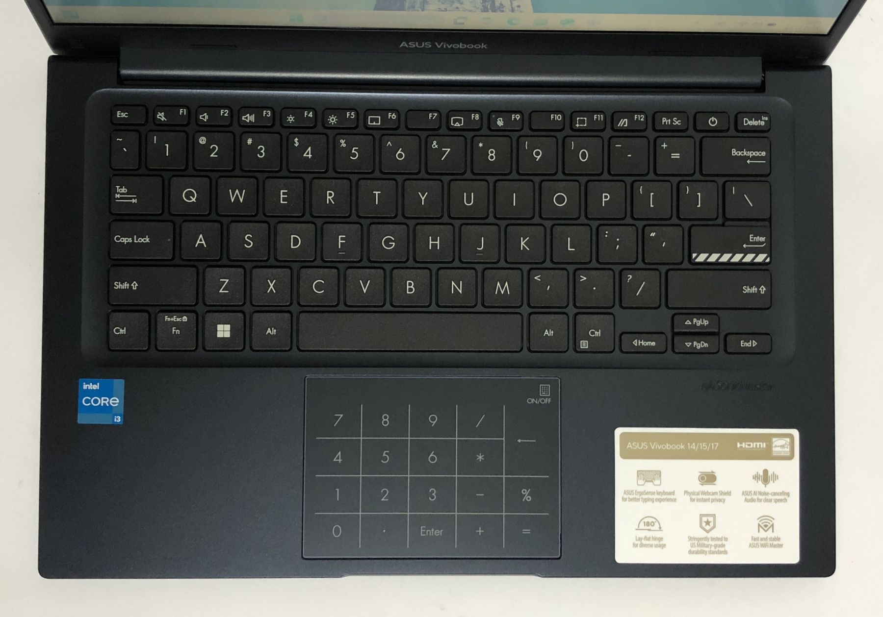 Ноутбук ASUS Vivobook X1404ZA (AVBKX1404ZA);14.1" (1920х1080) IPS матовий / Intel Core i3-12150U (3.30 - 4.40 GHz) / 8GB DDR4 RAM / 128GB SSD / Intel Iris Xe Graphics / без ОД / LAN / Wi-Fi / BT / Webcam / Windows 11 Home / Quiet Blue, 1.4 кг, Б/в
