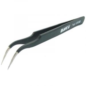 Пінцет вигнутий BAKU A8 7 Sa U.R.ESD з чорним антистатичним покриттям – це компактний ручний інструмент, призначений для підбирання дрібних предметів, які неможливо чи небезпечно брати пальцями. Складається із двох з’єднаних разом з одного боку важелів, вільні кінці яких при натисканні прикладаються один до одного. Інструмент використовується як кліщі, які здатні ефективно захоплювати мініатюрні предмети, утримуючи їх з великим зусиллям, не дозволяючи випасти. Цей інструмент знайшов широке застосування у різних сферах побутового життя, є невід’ємною частиною професійного оснащення.