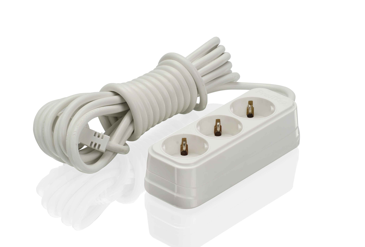 Подовжувач з 3 гніздами на 2м ProfiTec з заземленням зроблений з білого ABS пластику, який стійкий до високих температур. Мідна контактна група забезпечує високу провідність, низький нагрів і стійкість до окислення. Контактна група укладена в негорючий ізолятор з поліаміду, який витримує нагрівання до 650 ° C.