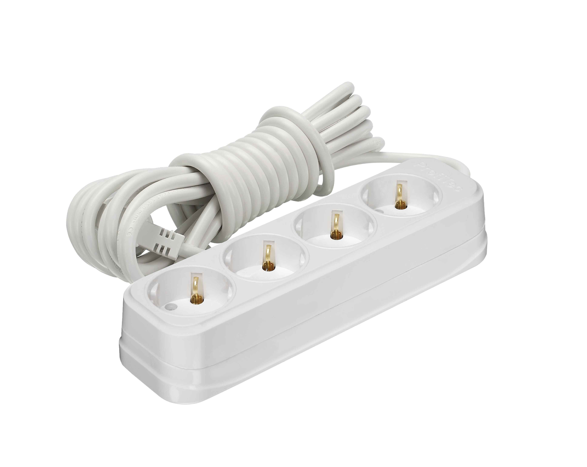 Подовжувач з 4 гніздами на 2м ProfiTec з заземленням зроблений з білого ABS пластику, який стійкий до високих температур. Мідна контактна група забезпечує високу провідність, низький нагрів і стійкість до окислення. Контактна група укладена в негорючий ізолятор з поліаміду, який витримує нагрівання до 650 ° C.