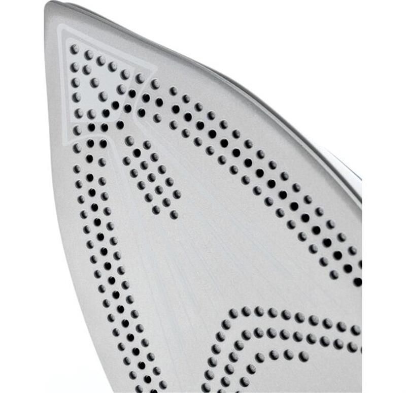 Система парової прасування відмінно продумана за рахунок декількох складових: резервуара для води (400 мл), 49 перфораций в підошві для виходу струменів пари і регулятор інтенсивності його подачі. Використовуючи їх, ви зможете відпарювати речі горизонтально або вертикально постійним паром з силою 30 г /хв.