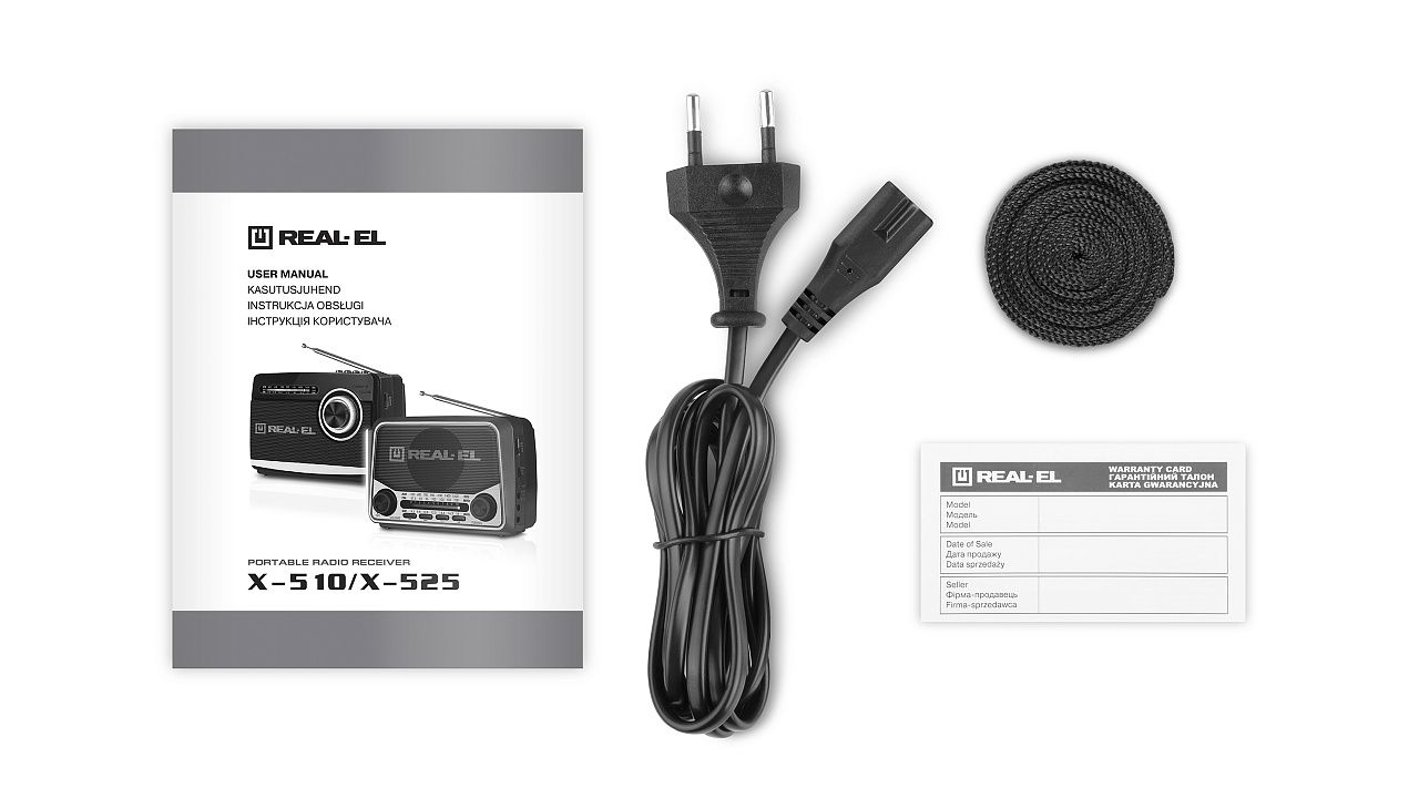 Лінійка радіоприймачів REAL-EL поповнилася моделлю REAL-EL X-510. Пристрій має вбудоване FM/AM/SW радіо, поворотну телескопічну антену, можливість відтворення музики з USB flash та microSD карт пам’яті та вбудовану батарею.