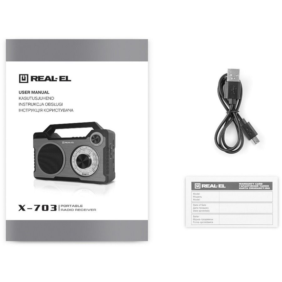 Радіоприймач REAL-EL X-703 - відмінне рішення для тих, хто любить радіо, але іноді краще слухати власну колекцію музики. З ним у вас завжди буде вибір! Приймач вже з’явився на полицях магазинів електроніки та побутової техніки.