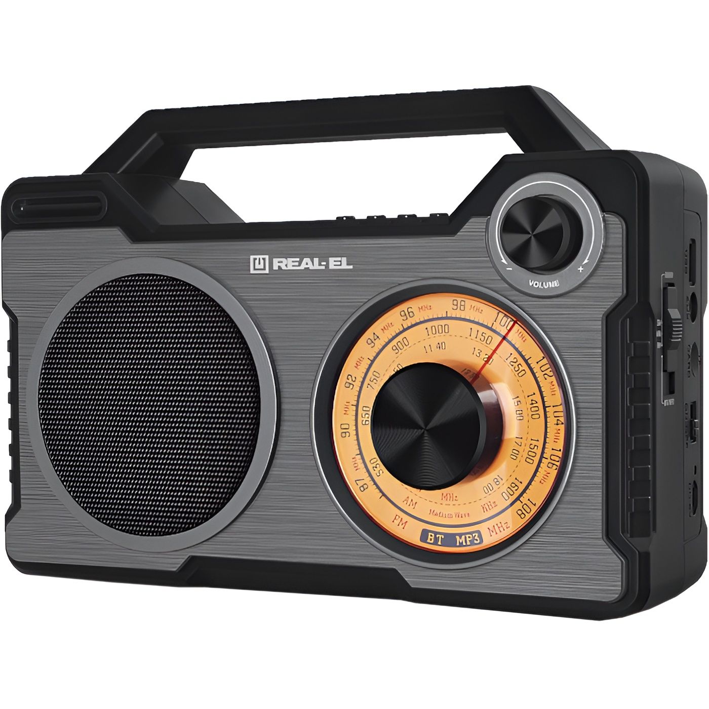 Радіоприймач REAL-EL X-703 - один із старших представників лінійки приймачів від REAL-EL, що має максимальний спектр можливостей. Основна його функція - звичайно, прослуховування радіоефіру. Вбудований тюнер дозволяє слухати FM/AM та короткохвильове SW-радіо. За впевнений прийом в будь-яких умовах відповідає поворотна телескопічна антена.