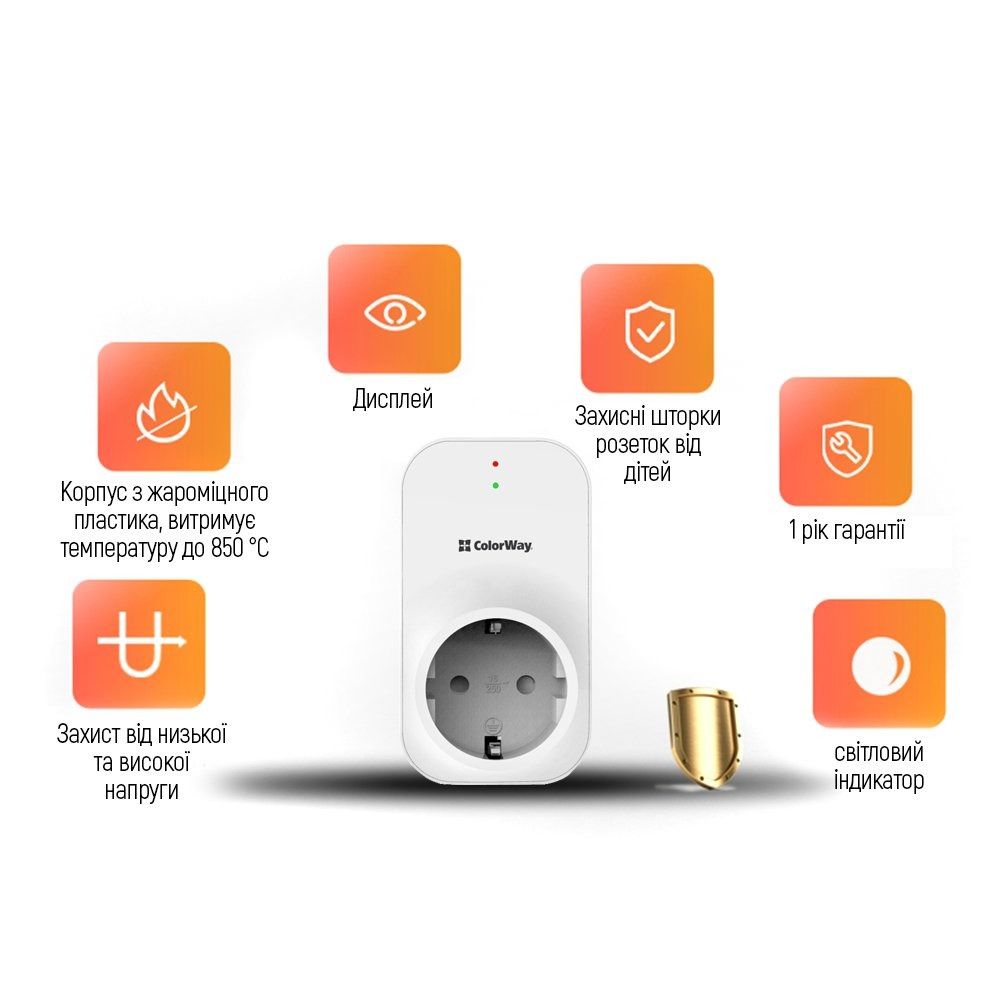Реле напруги ColorWay (16A/3680W) 150V-210V/230V-280V LED1, 1 розетка