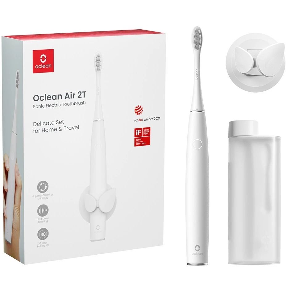 З ультразвуковою зубною щіткою Oclean Air 2T Electric Toothbrush ви підтримуєте здоров’я ротової порожнини як вдома, так і в подорожі. Ще більш тиха ультразвукова зубна щітка поєднує чарівний дизайн і функції, придатні для чутливих зубів. Крім самої щітки, в упаковці знаходиться стильна дорожня сумка, що дозволяє брати Oclean Air 2T Electric Toothbrush із собою у відрядження та відпочинок.