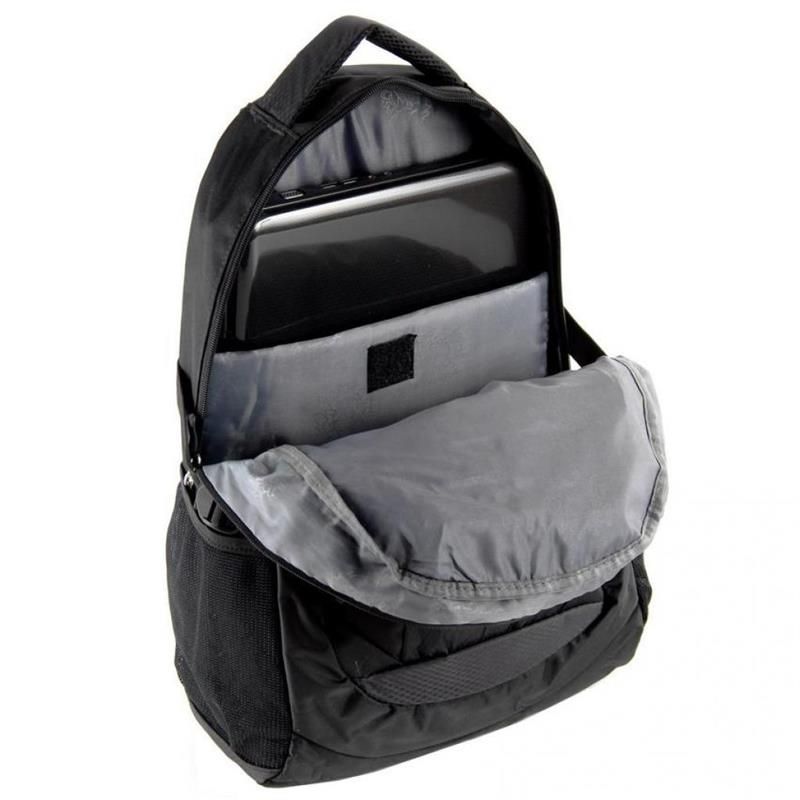 Тильна сторона рюкзака виконана з використанням "дихаючої" тканини, і щільних валиків, які збільшують комфорт при переносці, і покращують циркуляцію повітря в області контакту спини і рюкзака. З боків рюкзака є сітчасті кишені і бічні стяжки, для ущільнення і зменшення обсягу рюкзака.