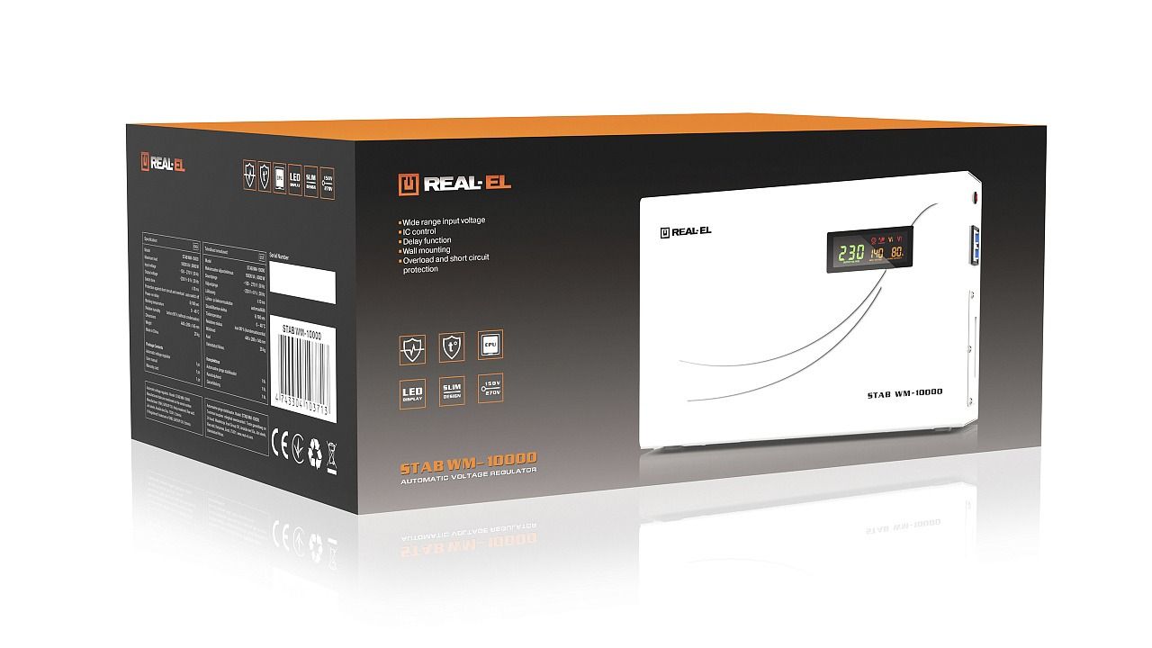 Стабілізатор напруги мережі REAL-EL STAB WM-10000 призначено для забезпечення якісним і стабільним електроживленням різних споживачів в умовах великих за значенням та тривалістю відхилень напруги електричної мережі від номінальної, захисту пристроїв-споживачів від перевантаження, від дії високочастотних та імпульсних перешкод.