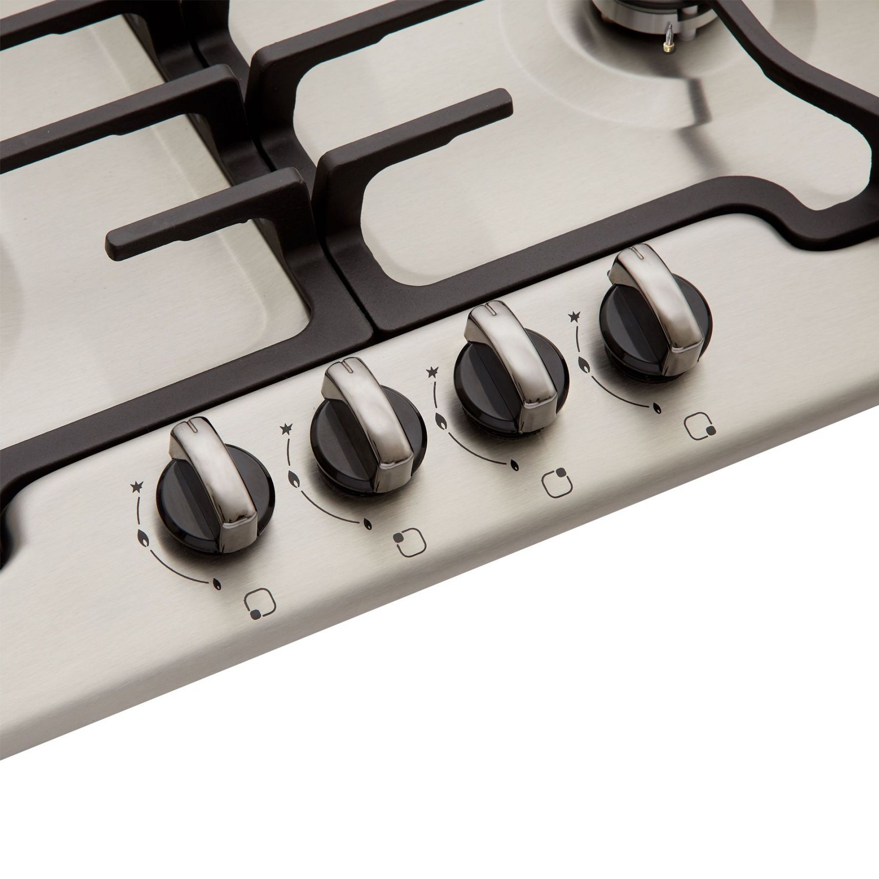 Варильна поверхня виготовлена з харчової нержавіючої сталі марки AISI 304 високої якості, яка не тільки має привабливий естетичний вигляд, а й проста у догляді, що точно оцінить кожна господиня. Поверхня має дві чавунні решітки сучасного ергономічного дизайну, котрі є стійкими до прогорання, а отже довговічними. Конструкція з двох решіток значно додає комфорту у використанні та забезпечує легкість у догляді.