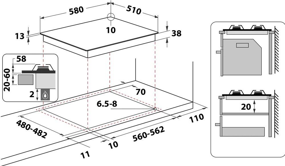 Розмір вбудовування:560х480 мм