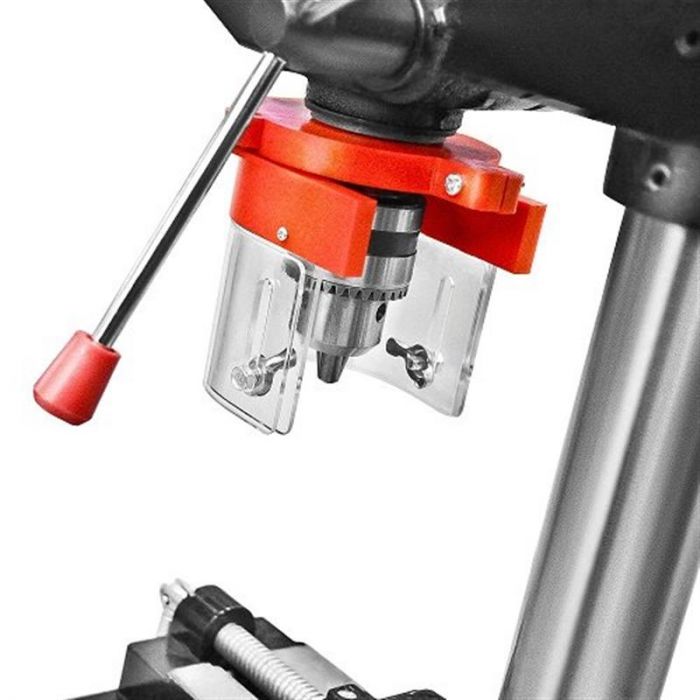 Stark DP-13-590 - свердлильний верстат для свердління отворів в деревині, металі, пластику, камені та інших предметах. Обладнаний чавунною основою-столом, завдяки якій верстат надійно стоїть на столі і дозволяє безпечно працювати з інструментом.