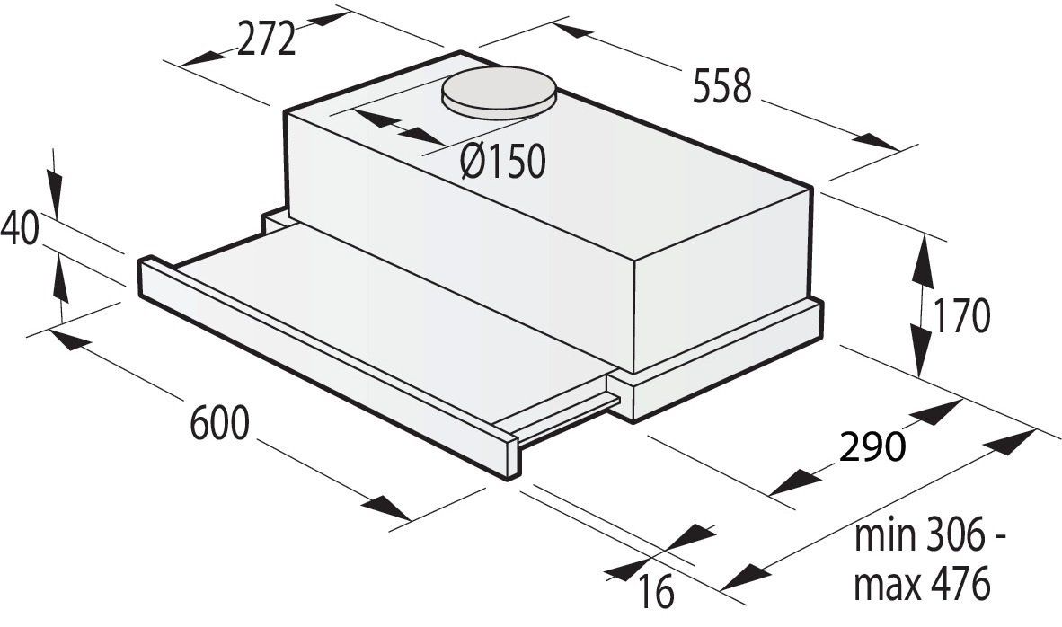 Розміри (ШхВхГ):600 х 170 х 306 мм