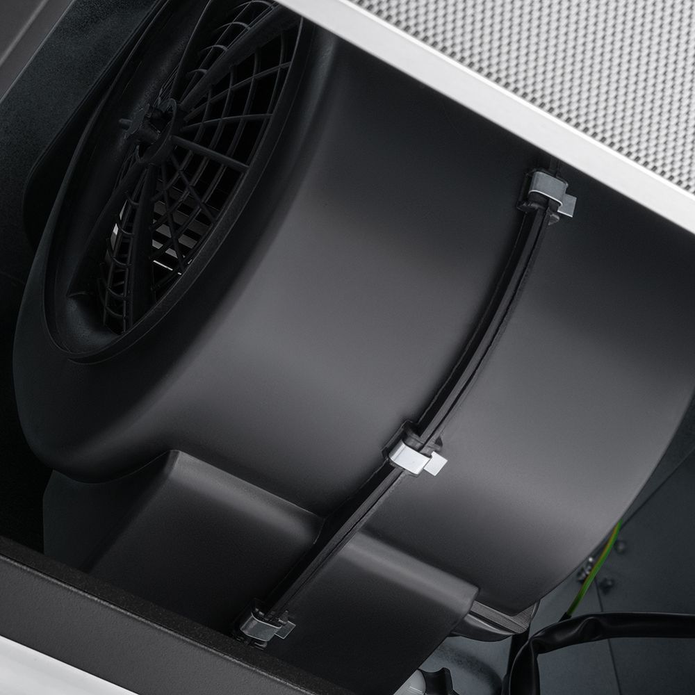 Непомітний помічник на кухні сподобається любителям мінімалізму. Витяжка повністю вбудовується в шафу й ідеально підходить для невеликих кухонь. Продуктивність 700 м3/год – цього достатньо для кухні 14-15 м2. LED-освітлення забезпечує комфортне приготування страв навіть у темний час доби. Ергономічне механічне керування дозволяє доволі легко змінювати швидкості. Витяжка може працювати в двох режимах на вибір - відведення повітря або рециркуляція.