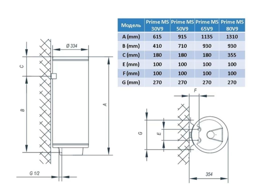 Водонагрівачі модельного ряду PRIME MS мають компактні розміри, що дозволяє їх використовувати в невеликих ванних кімнатах і приміщеннях.