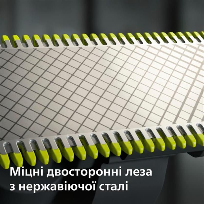 Повторює контури вашого обличчя, забезпечуючи ще більш ефективне і комфортне гоління на будь-яких його ділянках. Сумісне з усіма моделями електростанків Philips OneBlade.